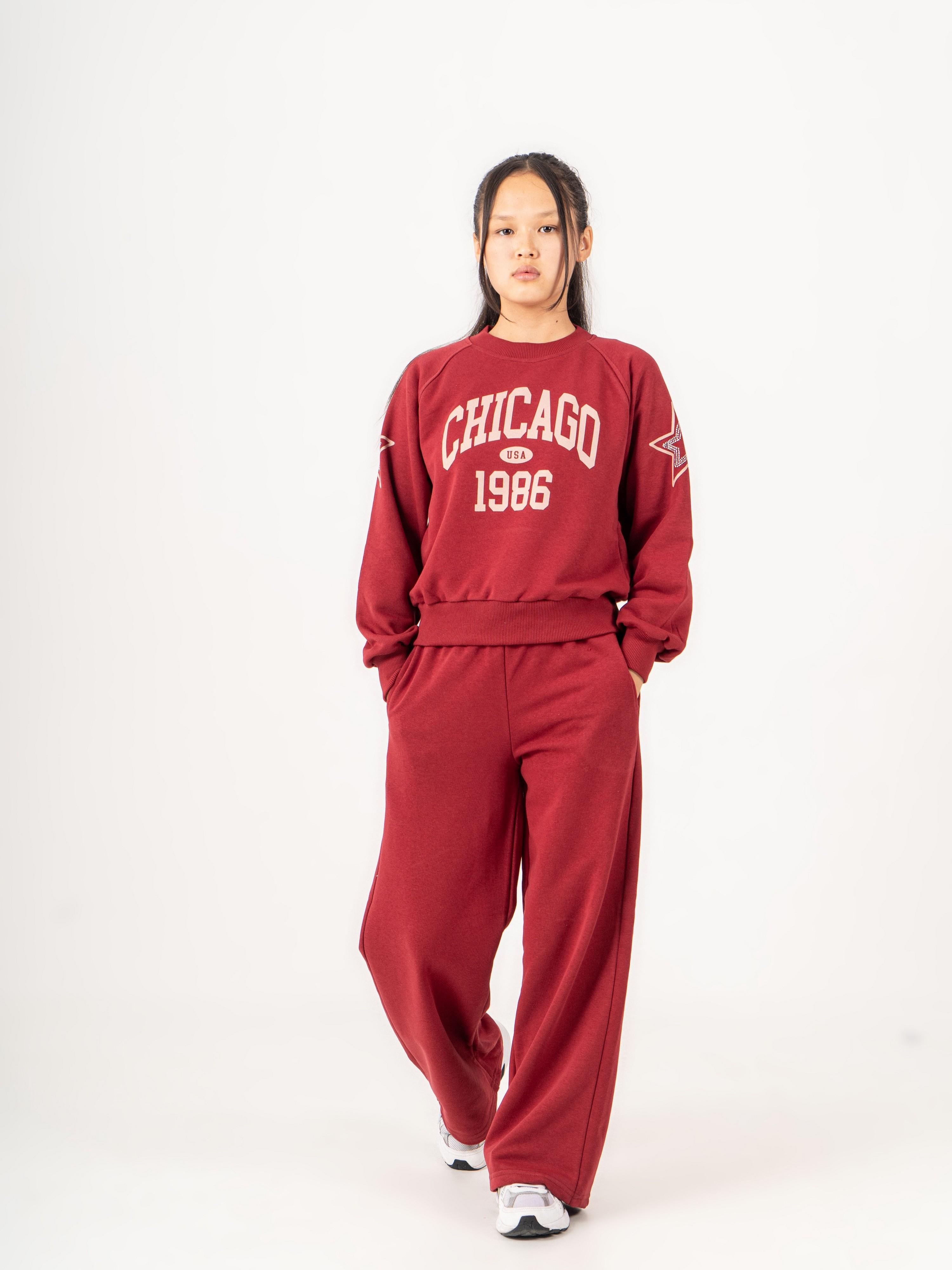 Chicago 1986 Eşofman Takımı, genç kız çocukları için sportif şıklığı ve konforu bir araya getirir. 3 iplik şardonsuz kumaşı, yumuşak dokusu ve dayanıklılığı ile günlük kullanım için idealdir.