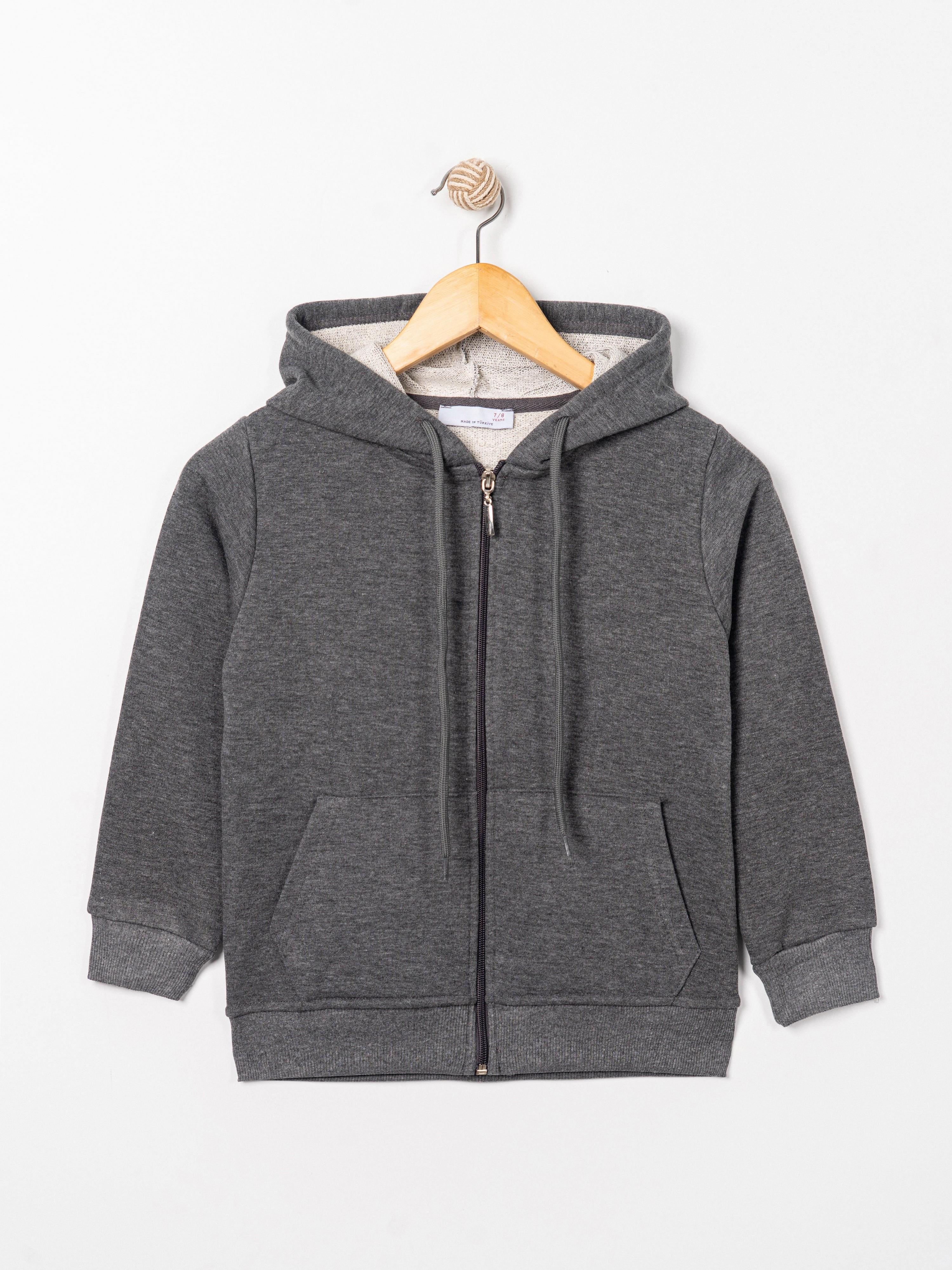 İki iplik kumaştan üretilmiş, günlük kullanıma uygun, rahat ve dayanıklı kapüşonlu fermuarlı hırka. 7–16 yaş aralığı için ideal.