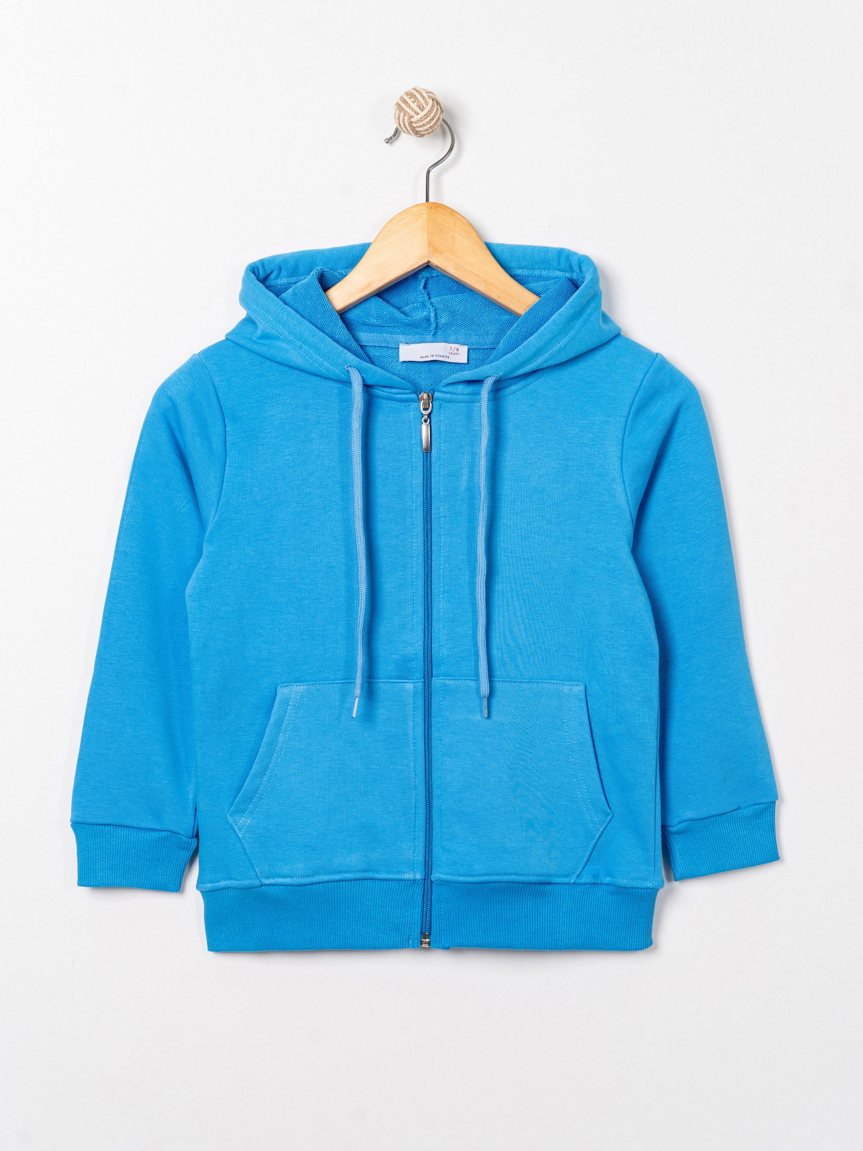 İki iplik kumaştan üretilmiş, günlük kullanıma uygun, rahat ve dayanıklı kapüşonlu fermuarlı hırka. 7–16 yaş aralığı için ideal.