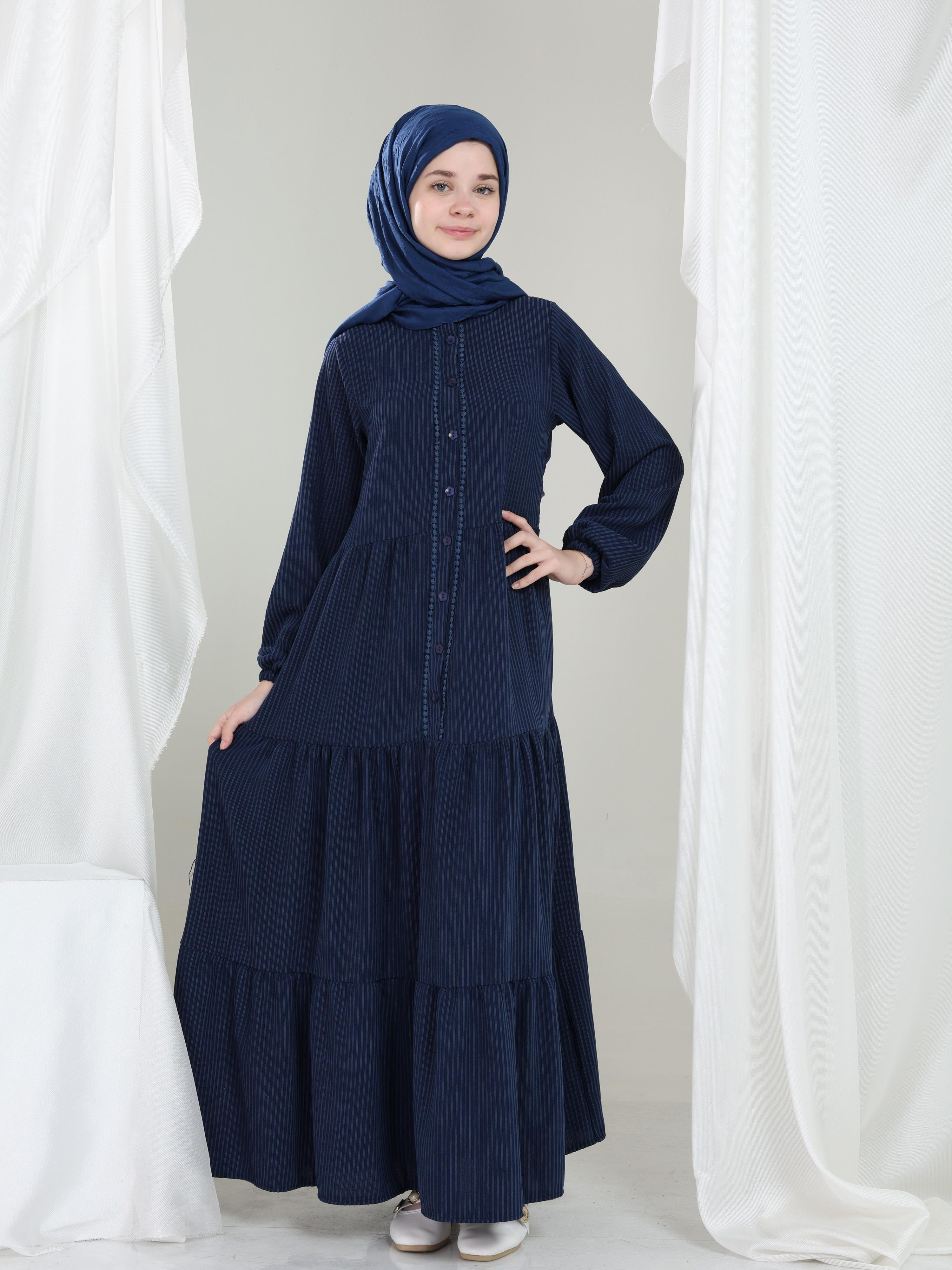 • Model: Uzun kollu, düğmeli, çizgili kadife elbise