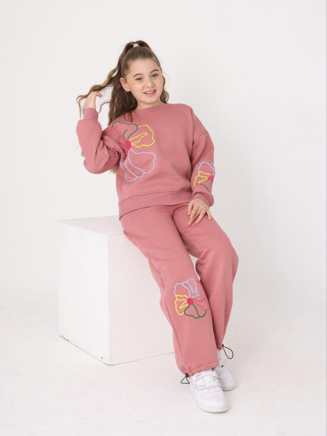Rengarenk Çiçek Kız Çocuk Eşofman Takımı, 10-15 yaş arası kız çocukları için konforlu ve modern bir seçenektir. Üç iplik şardonlu kumaşı sayesinde nefes alabilir ve yumuşak dokusuyla gün boyu rahatlık sunar. Günlük yaşam ve okul kombinleri için idealdir. Siyah, bej, Gri, pembe renk seçenekleriyle her zevke hitap eder.