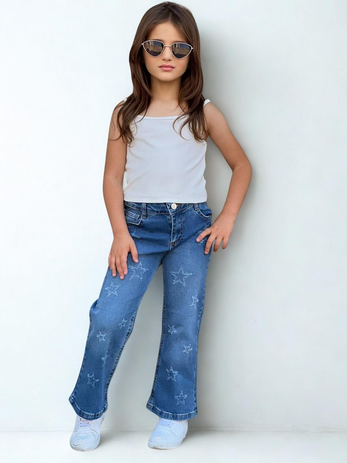 Şık ve modern tasarımıyla dikkat çeken yarım İspanyol kız kot pantolon, likralı kot kumaşı sayesinde esnek, dayanıklı ve rahat bir kullanım sunar. Yıldız desenli detaylarıyla günlük kombinlere farklı bir tarz katar.