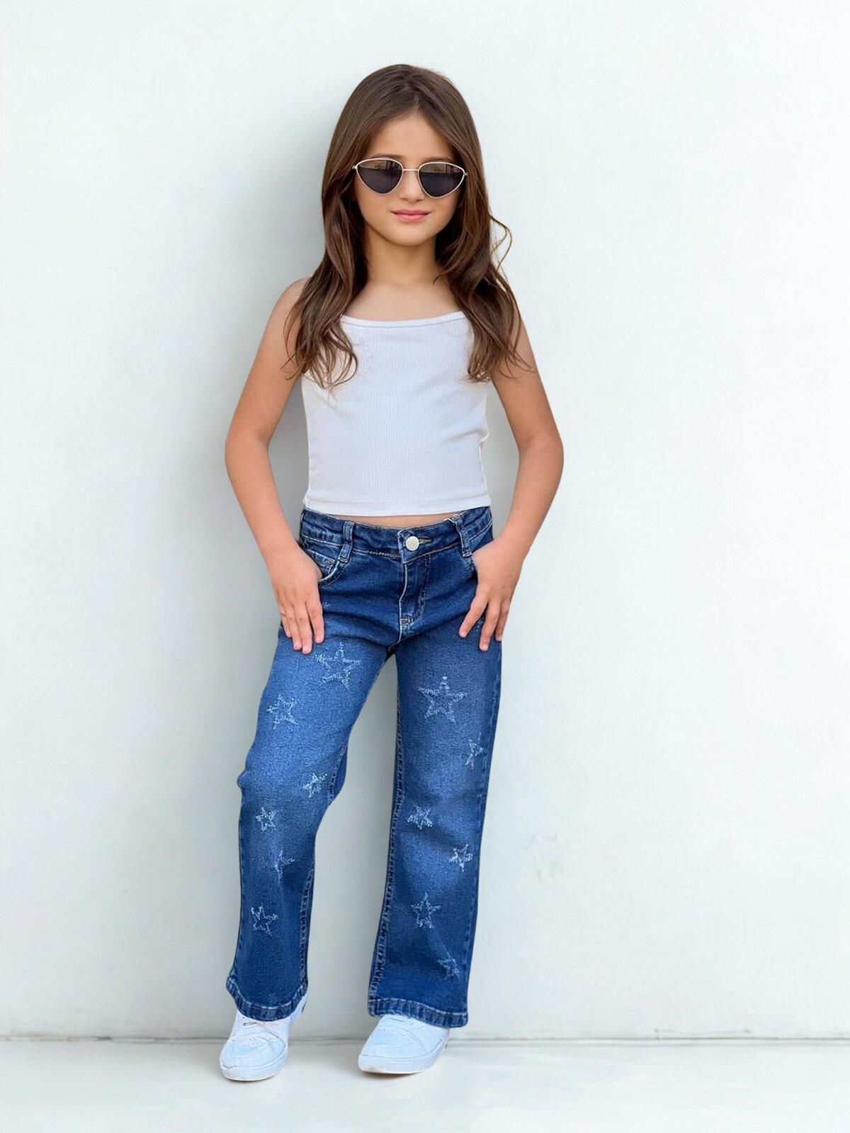 • Model: Yarım İspanyol paça kız kot pantolon, yıldız desenli